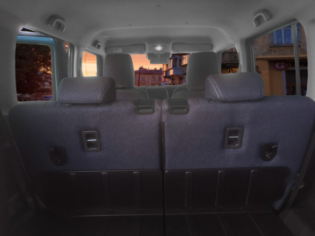 純正の黒っぽいシートと比べて車内が明るくなりました